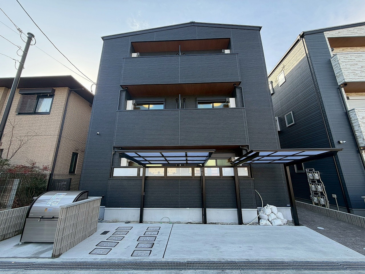 黒を基調とした外観でシックな色味でありながら周りの住環境とも、